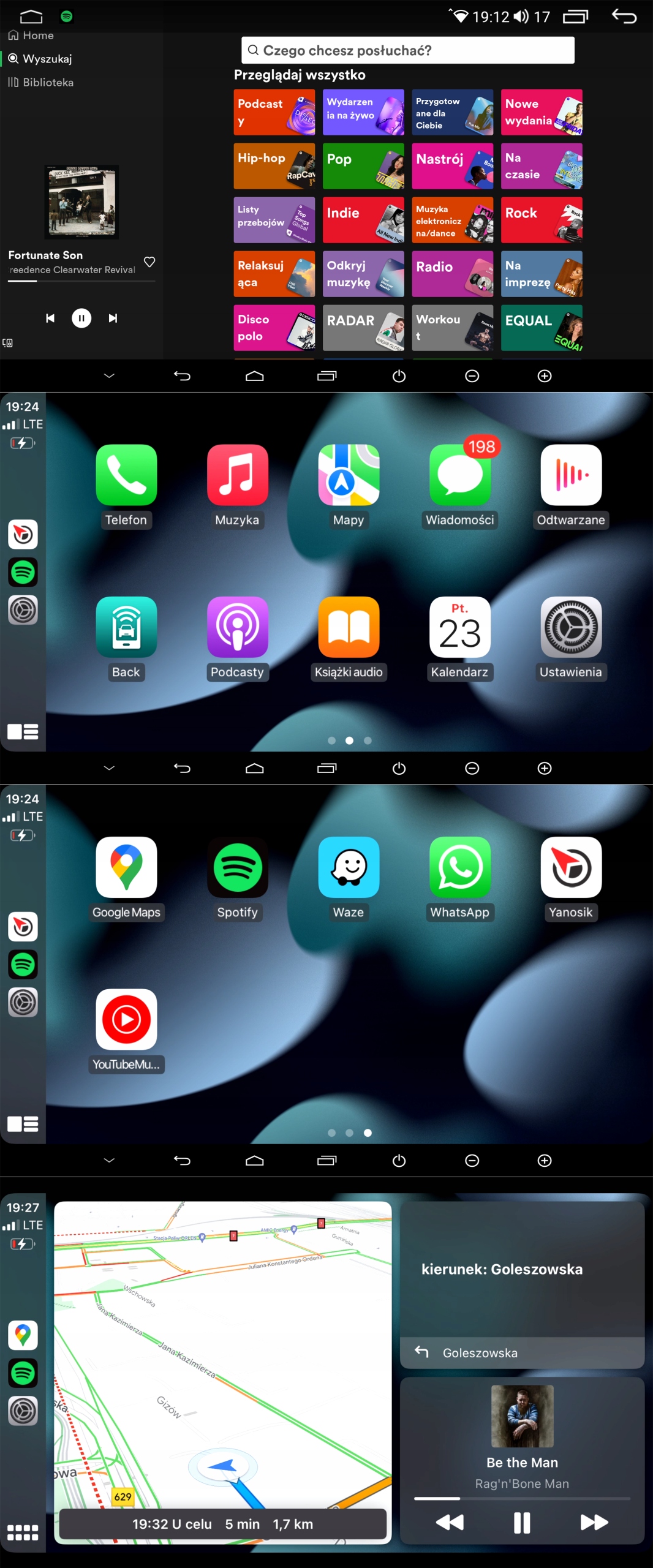 - Split-Screen – możliwość dzielenia ekranu na 2 aplikacje